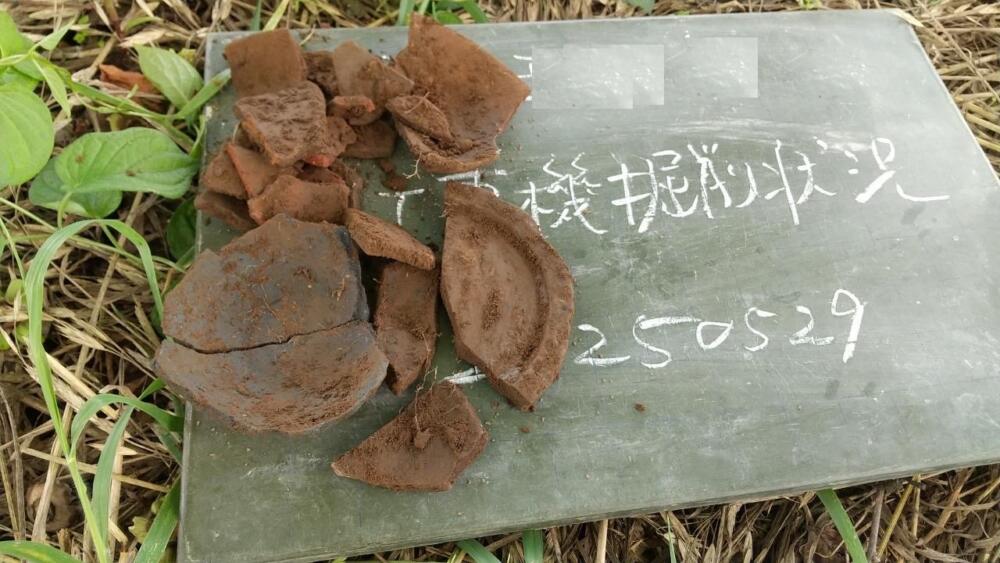 試掘は多々ありましたが、何かの穴(居住地跡?)が出たり、ついにはきれいな什器まで出ました!