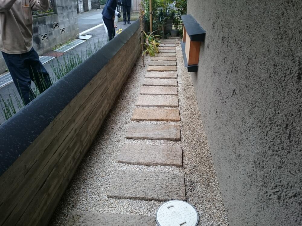 アプローチの塀は木枠の打ちっ放しコンクリートでしたが