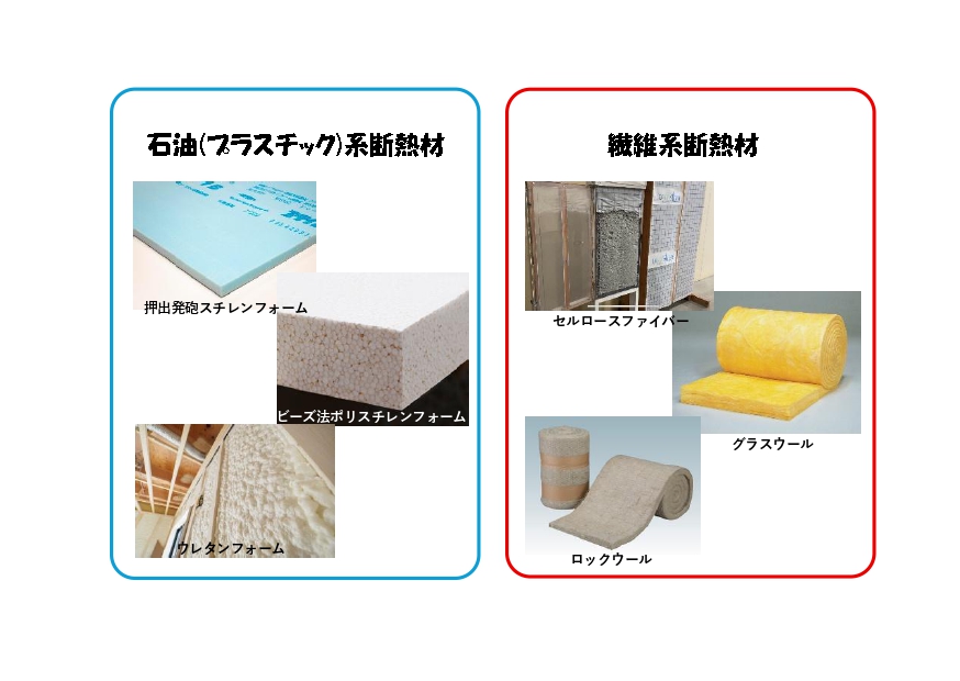 それらを大きくわけると石油(プラスチック)系断熱材と繊維系断熱材に大別されます。