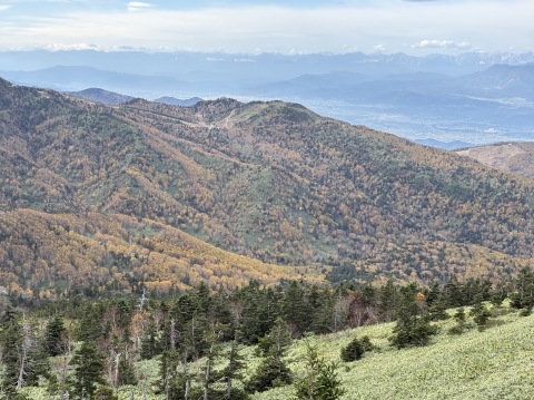 山頂からの眺めも素晴らしく、眼下に広がる志賀高原はもちろん、北アルプス、北信五岳、上越国境から日光方面の山並みなど飽きることがありません。