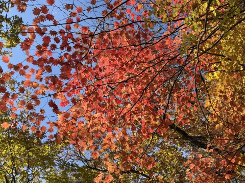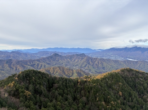 下の写真は、目の前に広がる南アルプスから八ヶ岳へと続く山並みと紅葉。