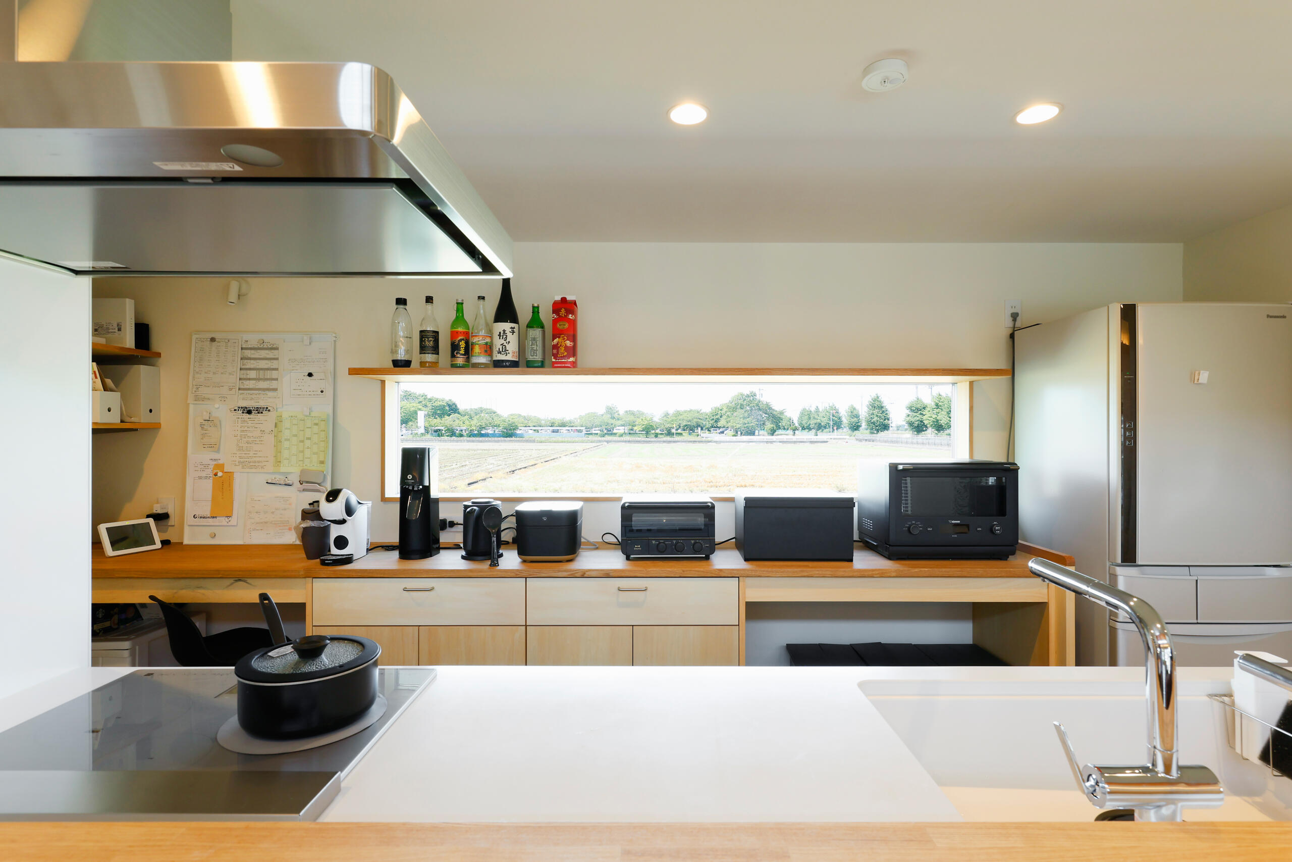 動線と収納計画に配慮したキッチンは、日々の家事をスムーズにしながら、窓越しの景色にふと癒される設計です。