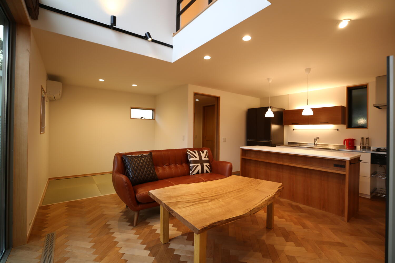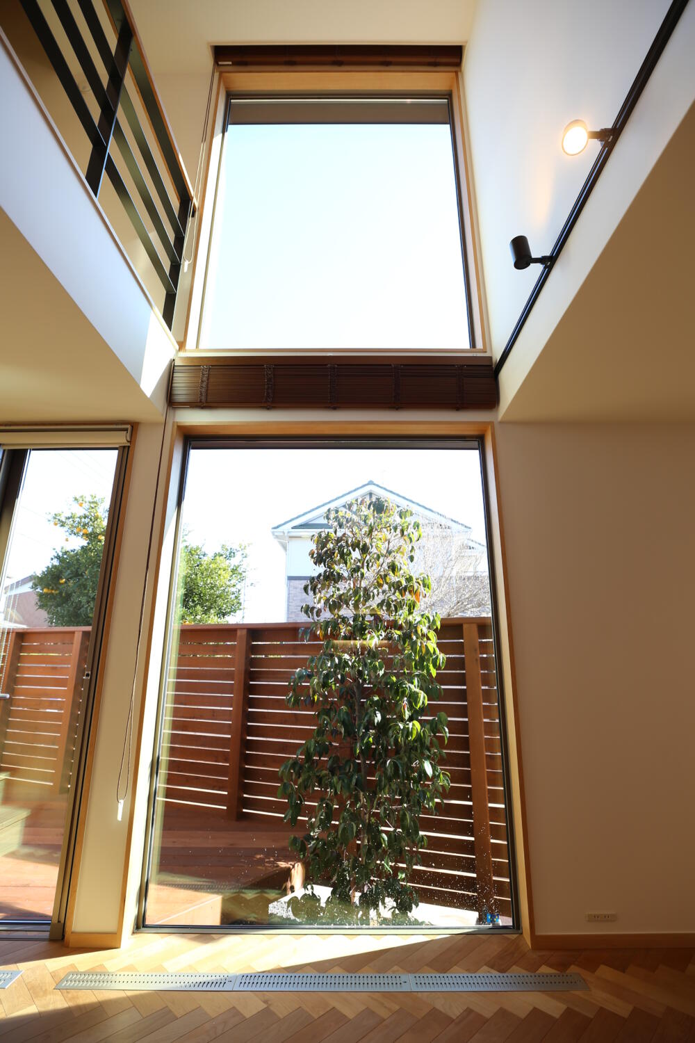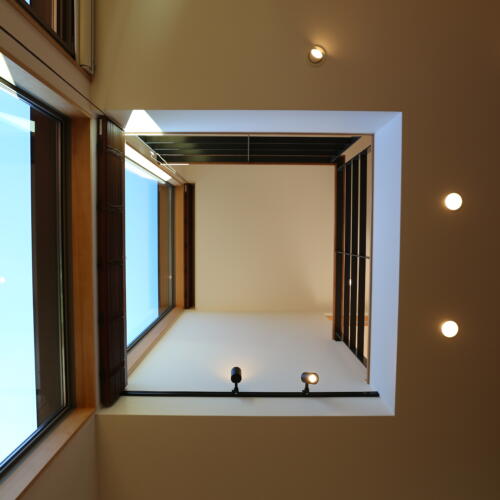 ちょっとの庭と、畳2枚分の吹き抜けを最大限に生かして空間の広がりと、